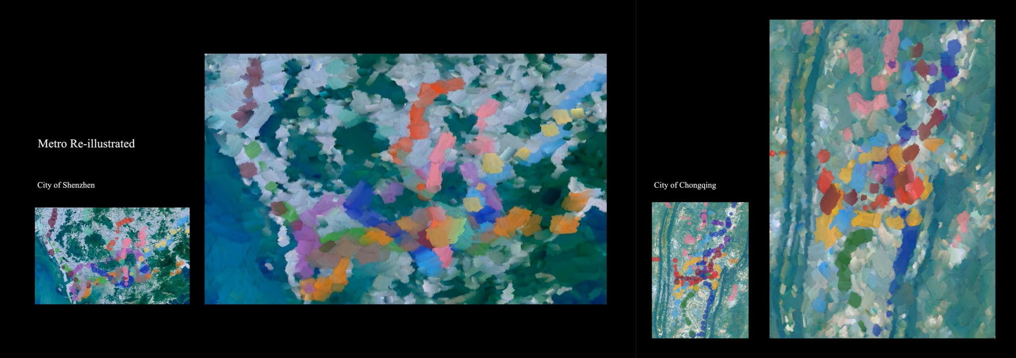 Firstly, an interactive system is built for labeling time-series data of city metro railway system on the transit map and generating reference images for the upcoming painting generation with data points on the corresponding satellite map of the city.